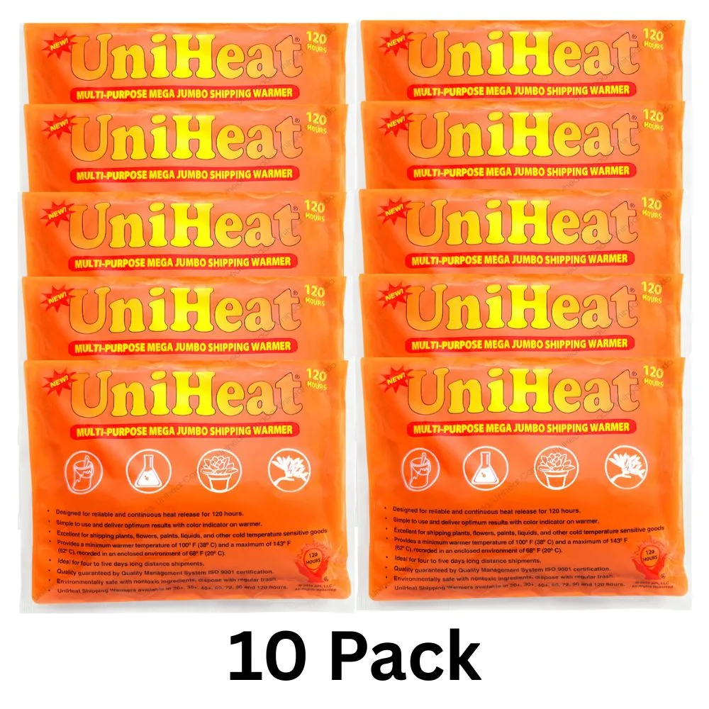- 10 pack of 120 hour uniheat heat packs shipping warmers