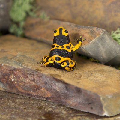 Dendrobates leucomelas Standard are delightful, colorful frogs in a few different colors. Unlike their ‘Banded’, or ‘Bumblebee’ counterparts the ‘Standards’ are more variable. These bold, confident, and active frogs will entertain the young and the old, the new keeper and the long term hobbyist alike, and they can be kept in groups in larger enclosures for even more enjoyment!