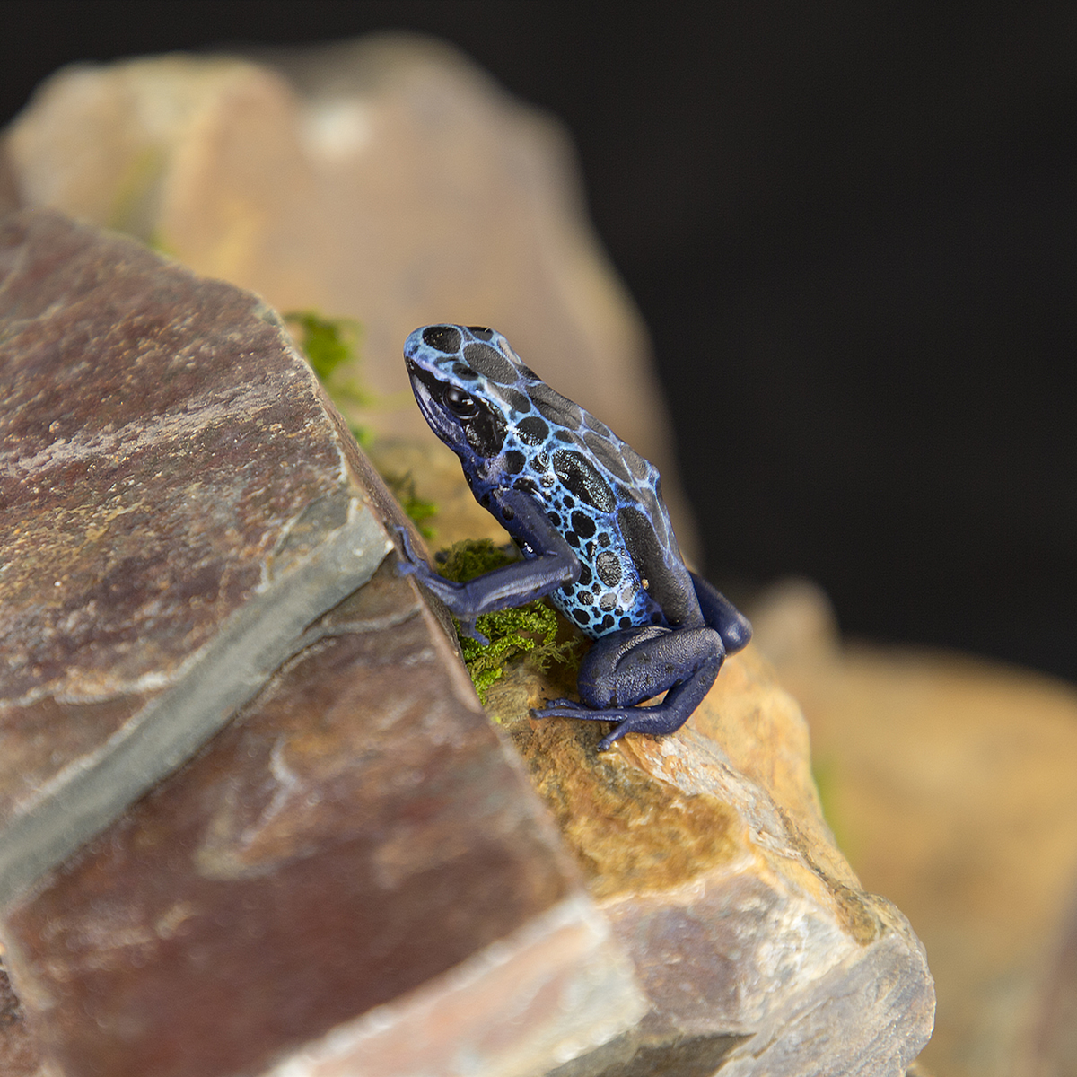 It is common for a healthy tinctorius New River to live between 10-20+ years in a vivarium. Please consider this before deciding to take them home to your family. As with most amphibians they are considered a “hands off” pet similar to a fish. Due to their delicate and permeable skin, it is not advised to handle your frogs. The chemicals, oils and debris on your hands could prove fatal to your dart frog pet when it is absorbed through their skin. It is recommended that you wear powder free rubber gloves if you are required to handle your dart frogs. In an emergency, such as an escape from the enclosure, try to capture them as fast as possible (bare hands will do… if needed) as they will try to hide quickly, and unfortunately this will become fatal very rapidly.