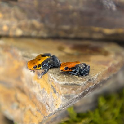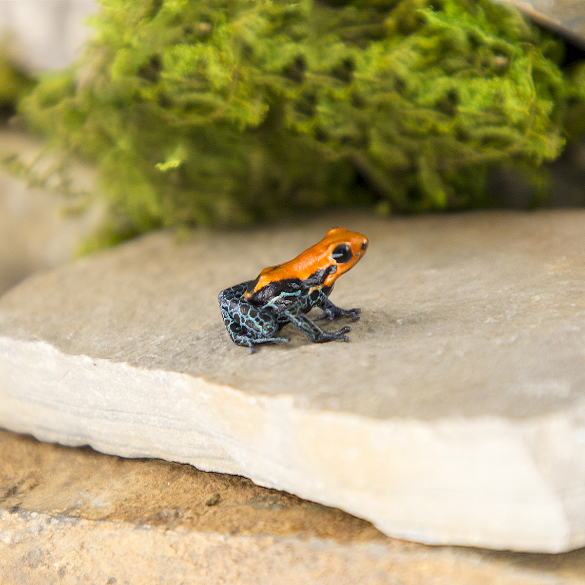 Ranitomeya amazonica Arena Blanca are delightful frogs that display a trio of stunning colors.  Orange, blue, and black, these frogs will stand out against the foliage.  Easy to care for, active during the day, and adorable, these frogs are a great beginner frog or a delight for the seasoned hobbyist.