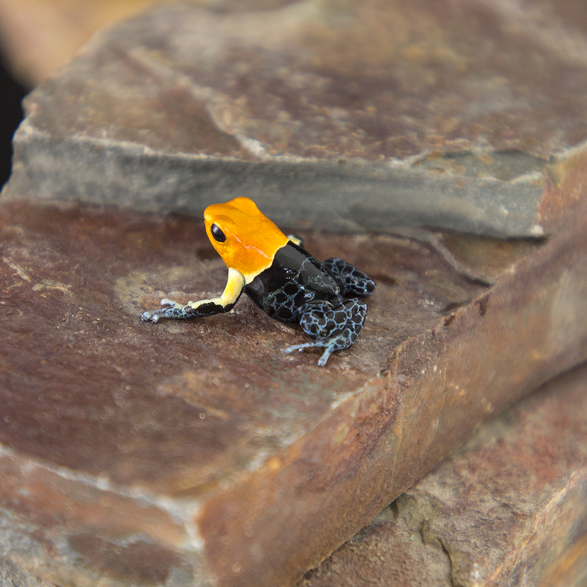 Ranitomeya fantastica True Nominal are delightful frogs that display a gradient of rich color. From their yellow heads, into their orange torsos and legs, and blue down into their backs, rear legs, and feet, they are an absolutely unique and completely beautiful small frog. Active, loud, and entertaining, you’ll love watching your True Nominals for years and years!