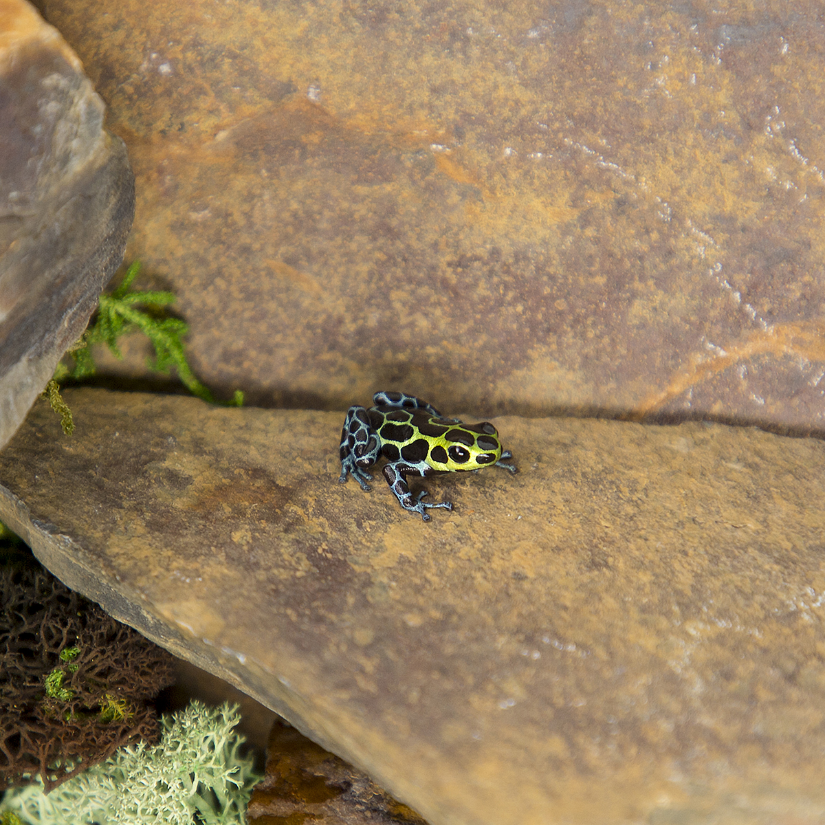 It is common for a healthy Ranitomeya to live for 10+ years in a vivarium. Please consider this before deciding to take them home to your family. As with most amphibians they are considered a “hands off” pet similar to a fish. Due to their delicate and permeable skin, it is not advised to handle your frogs. The chemicals, oils and debris on your hands could prove fatal to your dart frog pet when it is absorbed through their skin. It is recommended that you wear powder free rubber gloves if you are required to handle your dart frogs. In an emergency, such as an escape from the enclosure, try to capture them as fast as possible (bare hands will do… if needed) as they will try to hide quickly, and unfortunately this will become fatal very rapidly.