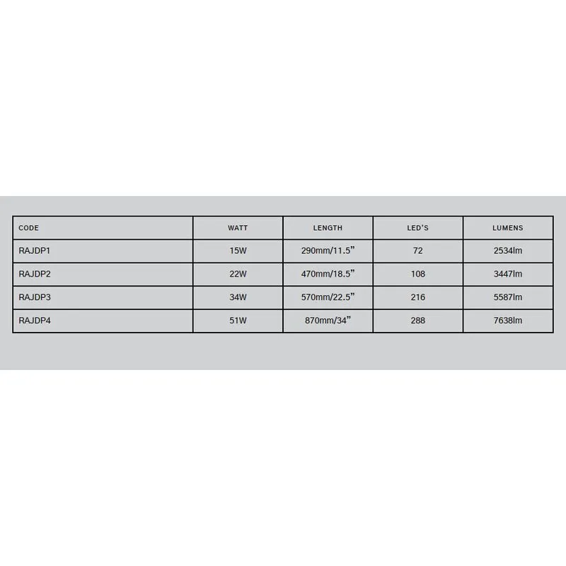 Arcadia Reptile JungleDawn-LED Light Bars are available in 4 sizes. 11.5″/15watt, 18.5″/22watt, 22.5″/34watt and the 34″/51watt.