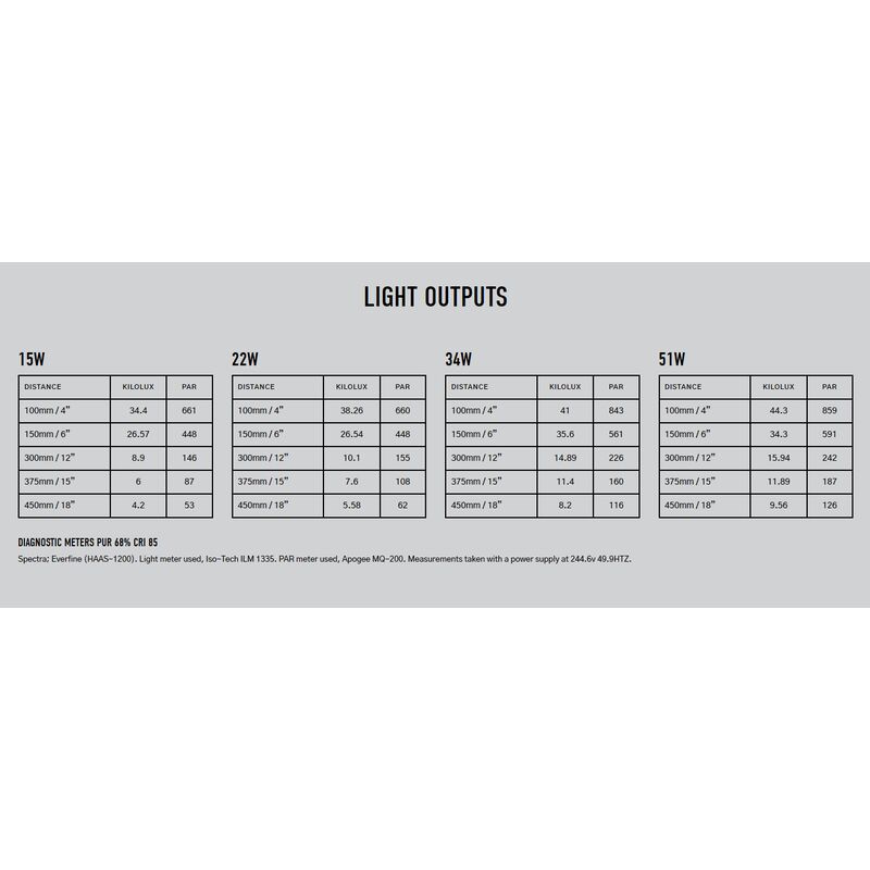 PAR (photosynthetic Active Radiation) is the measurement used to quantify and describe the amount of energy that is produced by a light source. PAR levels are increased by two elements within lighting and these are;