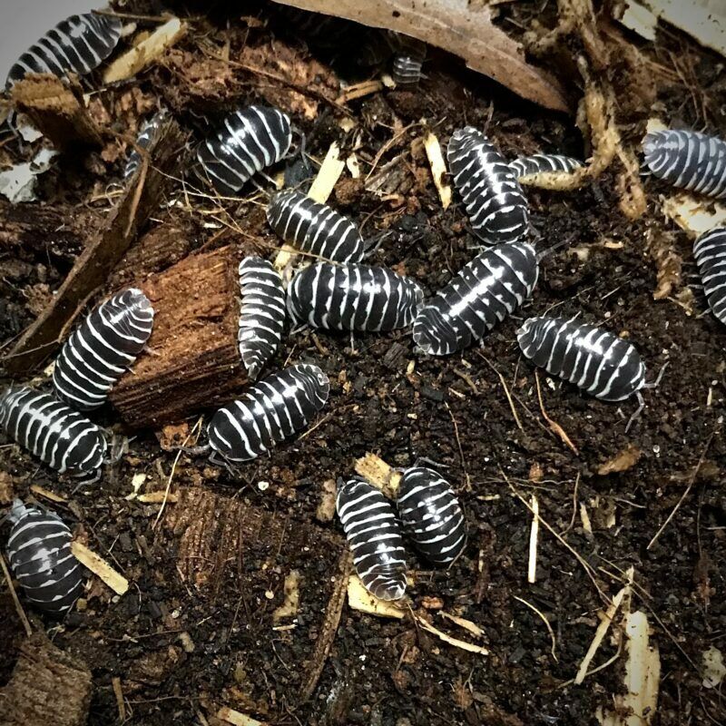Armadillidium Maculatum Zebra Isopods are very popular among experienced and amateur isopod keepers alike. These cute little isopods do well in humid terrariums and vivariums. They will eat the decaying bio-matter left in the habitat, including decaying plants, left over feeder insects and other foods.