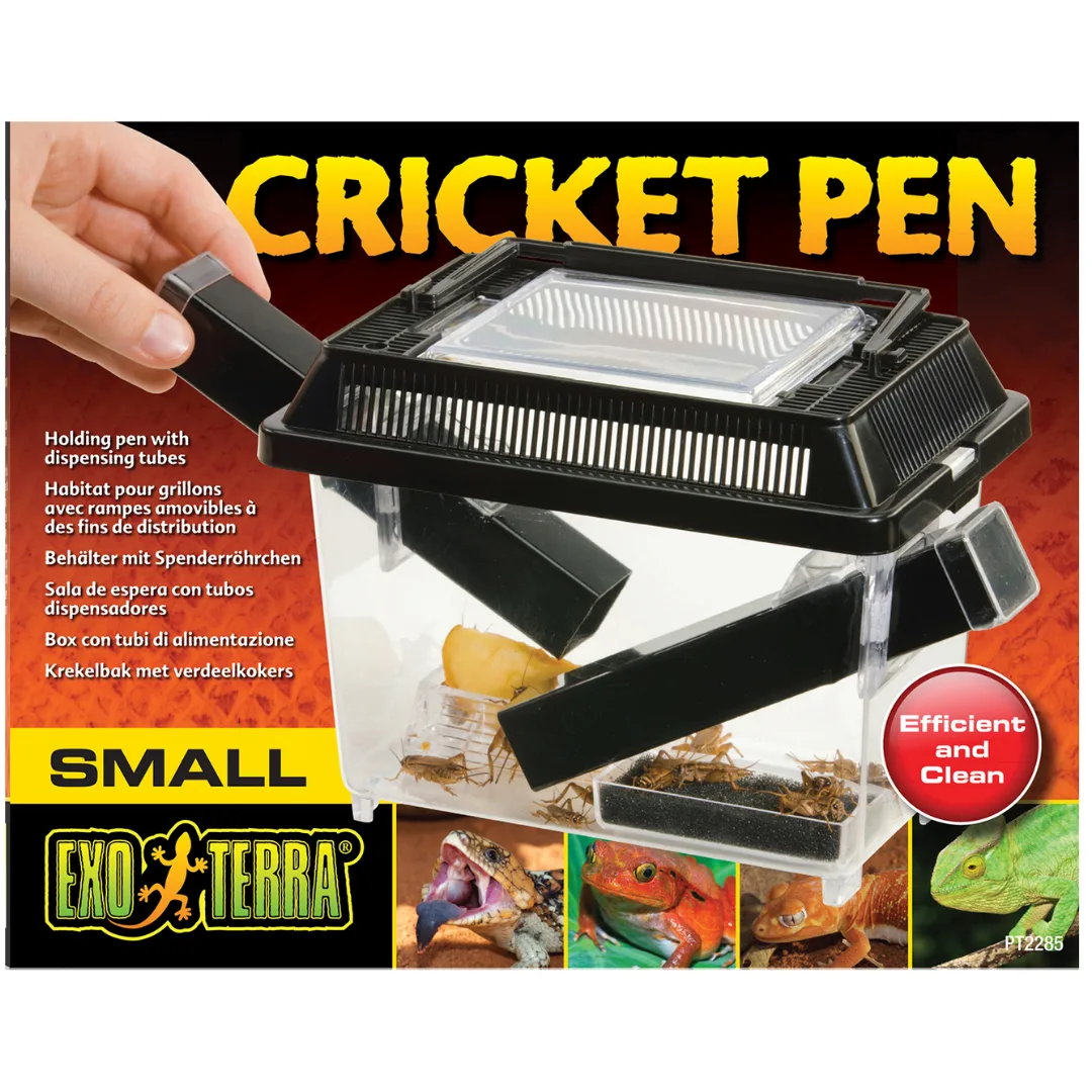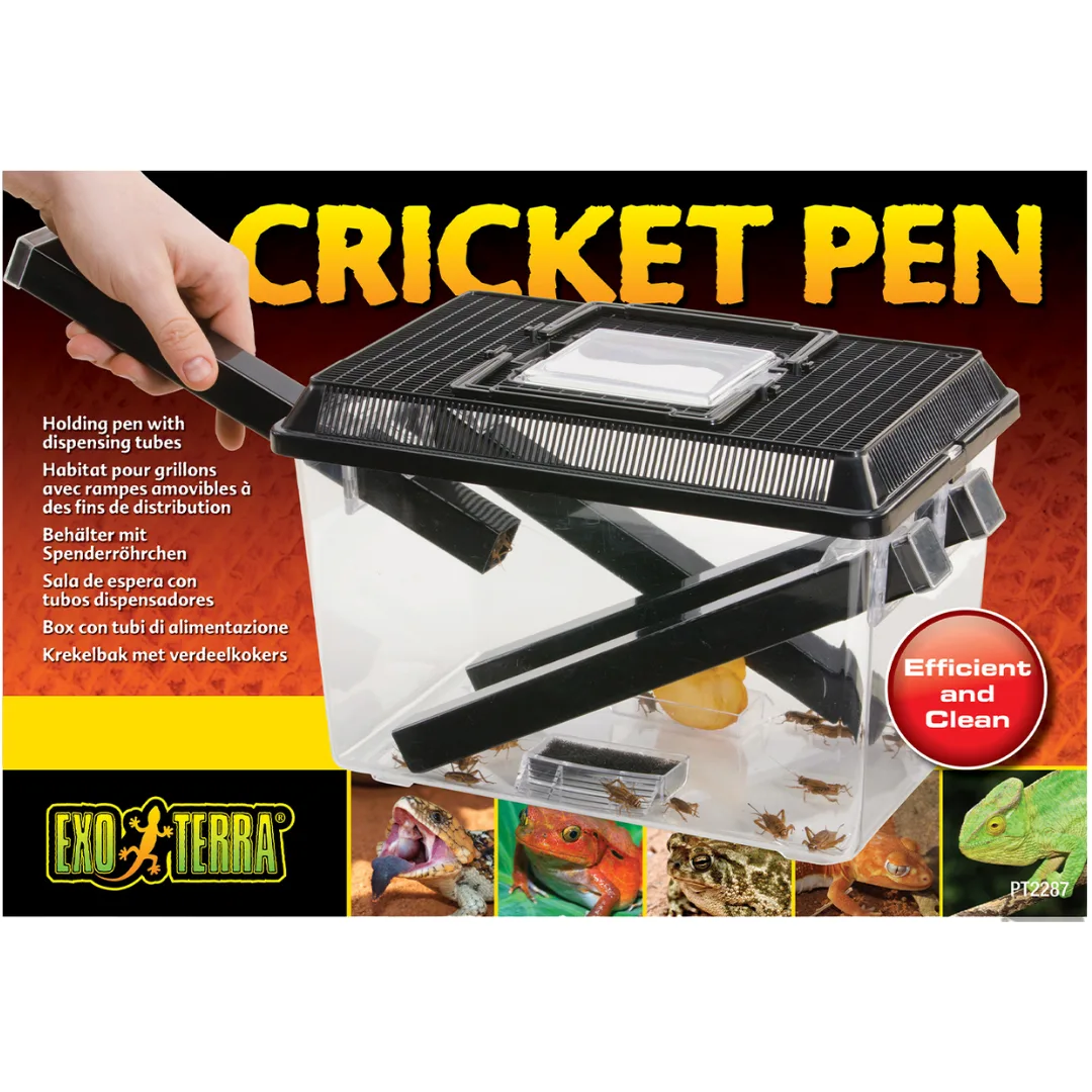 The Exo Terra Cricket Pen is ideal for housing, keeping and dispensing live crickets. Crickets prefer dark spaces, and will readily crawl into the tubes which provide hiding places for them, making it easy to use the tubes as dispensing tools. The tubes remain in position when the lid is removed, allowing easy access and less chance of cricket escape. Simply pull out a tube, shake a few crickets into the terrarium or feeder, and replace the tube back into the cricket pen.