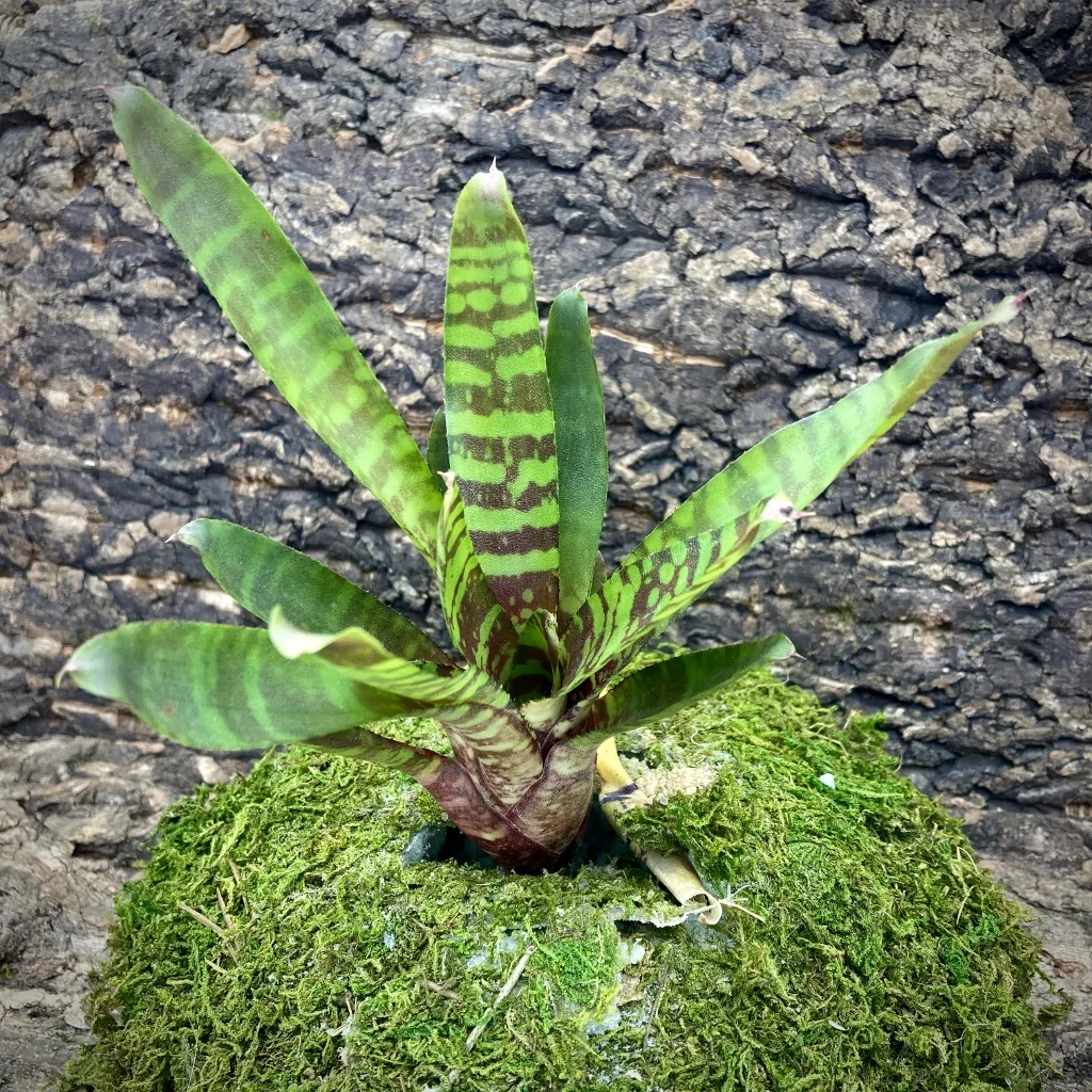 Neoregelia Bromeliads are typically found in the canopy of a rainforest and are considered to be an epiphyte, as such they do not require to be planted directly into the soil. They will gather their nutrients from the rain water and animal droppings left on their leaves.