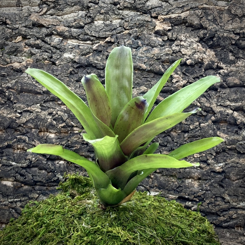 Mini Neoregelia Bromeliads are vibrant and hardy tropical plants that grow in the canopy of tropical rainforests. Mini Bromeliads are small to medium sized plant, that may vary in size from 4-6″ (10-15cm). They are hardy and an excellent plant that is suitable for all types of humid terrariums or vivariums and are safe to use with most amphibians and many tropical reptiles. Bromeliads are the quintessential plant to use in dart frog vivariums. Many of the smaller dart frogs such as Ranitomeya and Oophaga Pumilio species will use these plants to lay eggs and raise tadpoles in. Which directly mimics the behavior these tiny frogs do in the wild. Neoregelia Bromeliads are typically found in the canopy of a rainforest and are considered to be an epiphyte, as such they do not require to be planted directly into the soil. They will gather their nutrients from the rain water and animal droppings left on their leaves. Bromeliads can vary a lot in their colours depending on their hybrid, as well as the quality of light you provide for them. Bromeliads that are placed under a high intensity plant growing light will show off more of their vibrant colors. Where as bromeliads under less intense lighting will loose some of their vibrant colors and show off more green. We use the Arcadia Jungle Dawn LED Light Bar to achieve and maintain our bromeliads vibrant colors.