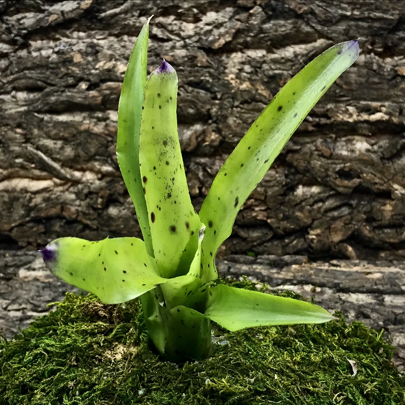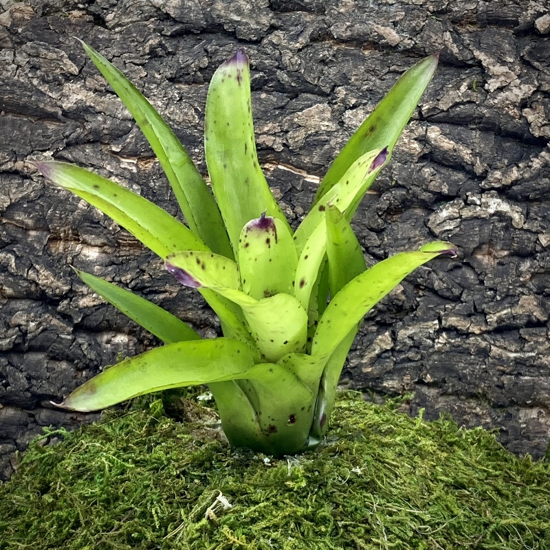 Mini Neoregelia Bromeliads are vibrant and hardy tropical plants that grow in the canopy of tropical rainforests. Mini Bromeliads are small to medium sized plant, that may vary in size from 4-6″ (10-15cm). They are hardy and an excellent plant that is suitable for all types of humid terrariums or vivariums and are safe to use with most amphibians and many tropical reptiles. Bromeliads are the quintessential plant to use in dart frog vivariums. Many of the smaller dart frogs such as Ranitomeya and Oophaga Pumilio species will use these plants to lay eggs and raise tadpoles in. Which directly mimics the behavior these tiny frogs do in the wild. Neoregelia Bromeliads are typically found in the canopy of a rainforest and are considered to be an epiphyte, as such they do not require to be planted directly into the soil. They will gather their nutrients from the rain water and animal droppings left on their leaves. Bromeliads can vary a lot in their colours depending on their hybrid, as well as the quality of light you provide for them. Bromeliads that are placed under a high intensity plant growing light will show off more of their vibrant colors. Where as bromeliads under less intense lighting will loose some of their vibrant colors and show off more green. We use the Arcadia Jungle Dawn LED Light Bar to achieve and maintain our bromeliads vibrant colors.