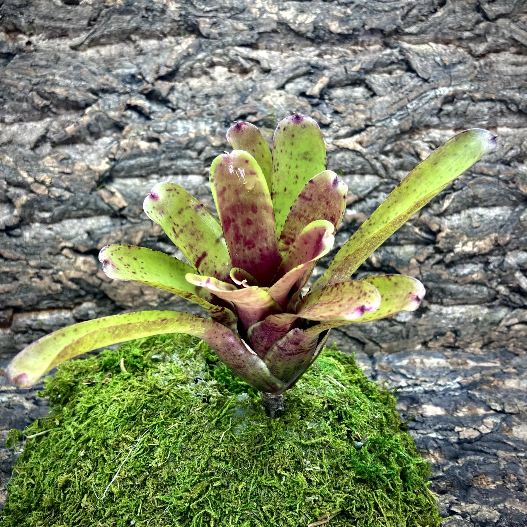 Neoregelia Bromeliads are typically found in the canopy of a rainforest and are considered to be an epiphyte, as such they do not require to be planted directly into the soil. They will gather their nutrients from the rain water and animal droppings left on their leaves.