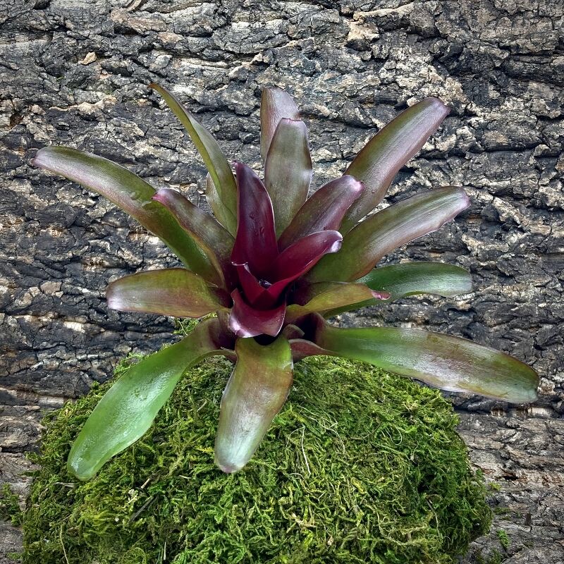 Neoregelia Bromeliads are typically found in the canopy of a rainforest and are considered to be an epiphyte, as such they do not require to be planted directly into the soil. They will gather their nutrients from the rain water and animal droppings left on their leaves.