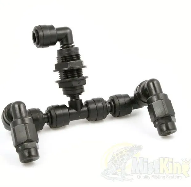 The “L” Misting Nozzle is used as an individual nozzle or at the end of a chain. Please select the “T” Double Misting Nozzle if you wish to install multiple misting assemblies in a row.