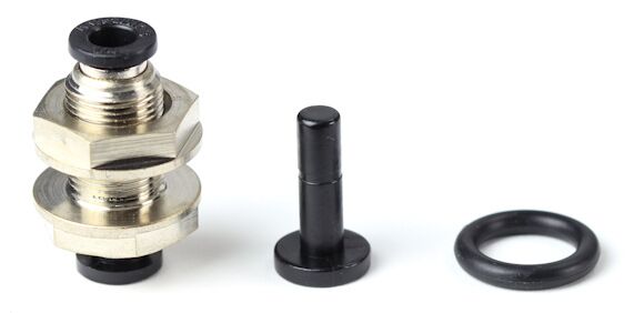 - Reservoir bulkhead with o-ring and 1/4″ plug