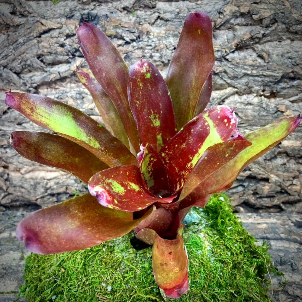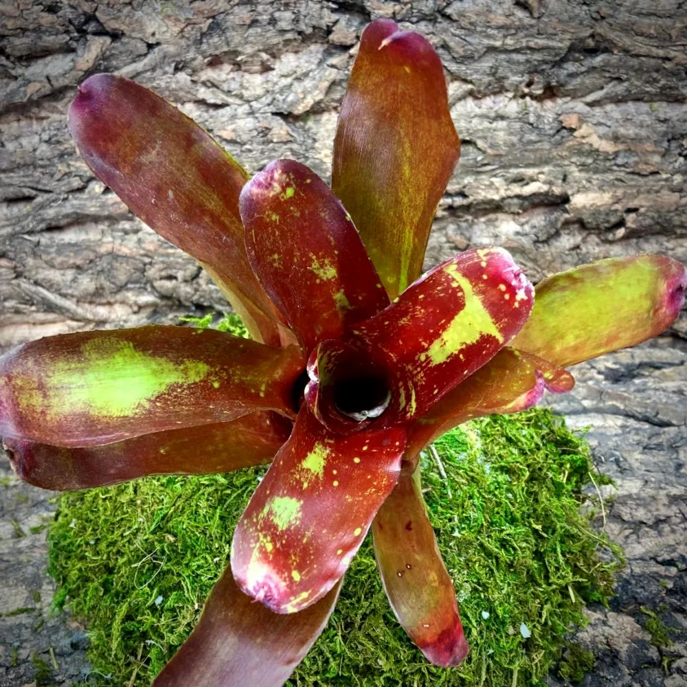 Neoregelia Bromeliads are typically found in the canopy of a rainforest and are considered to be a epiphyte, as such they do not require to be planted directly into the soil. They will gather their nutrients from the rain water and animal droppings left on their leaves.