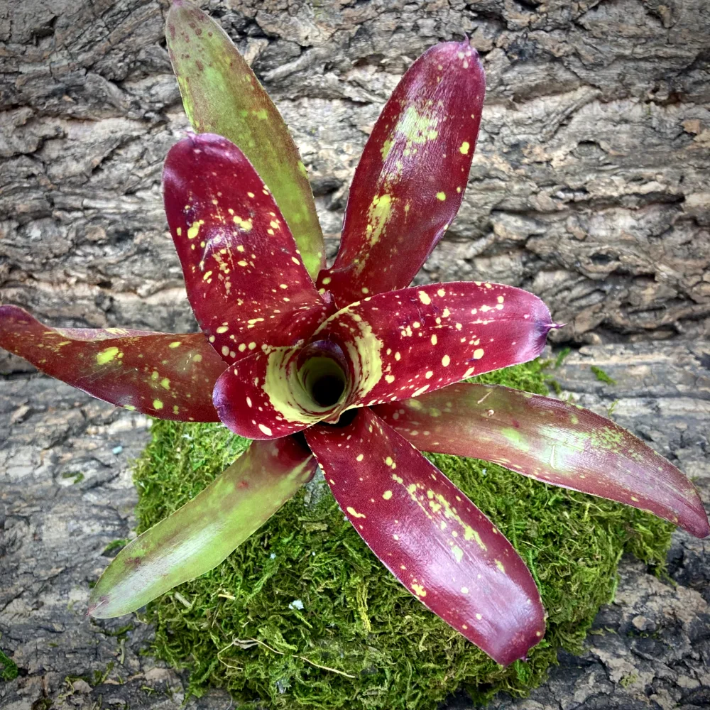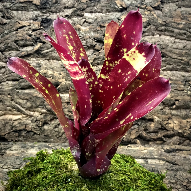 Neoregelia Bromeliads are typically found in the canopy of a rainforest and are considered to be a epiphyte, as such they do not require to be planted directly into the soil. They will gather their nutrients from the rain water and animal droppings left on their leaves.