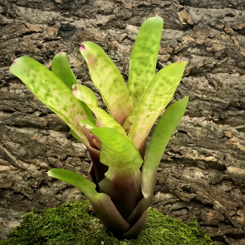 Neoregelia Bromeliads are vibrant and hardy tropical plants that grow in the canopy of tropical rainforests. This Bromeliad is a medium sized plant, that may vary in width from 8-12″ (20-30cm). They are hardy and an excellent plant that’s suitable for all types of humid terrariums or vivariums and are safe to use with most amphibians and many tropical reptiles. Bromeliads are the quintessential plant to use with dart frog vivariums. Many of the smaller dart frogs such as Ranitomeya and Oophaga Pumilio species will use these plants to lay eggs and raise tadpoles in. Which mimics the behavior these tiny frogs do in the wild. Neoregelia Bromeliads are typically found in the canopy of a rainforest and are considered to be a epiphyte, as such they do not require to be planted directly into the soil. They will gather their nutrients from the rain water and animal droppings left on their leaves. Bromeliads can vary a lot in their colours depending on their hybrid, as well as the quality of light you provide. Bromeliads that are placed under a high intensity plant growing light will show off more of their vibrant colors. Where as bromeliads under less intense lighting will loose some of their vibrant colors and show off more green. We use the Arcadia Jungle Dawn LED Light Bar to achieve and maintain our bromeliads vibrant colors.