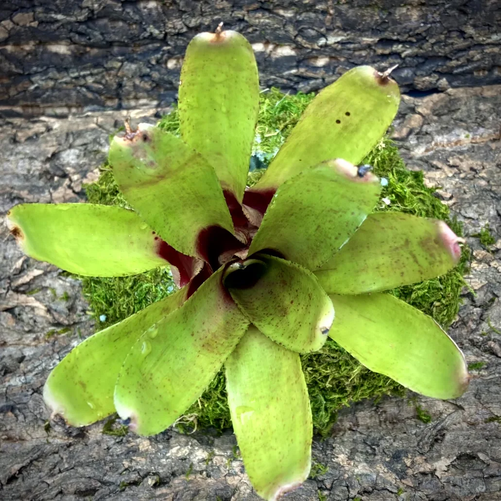Neoregelia Bromeliads are typically found in the canopy of a rainforest and are considered to be a epiphyte, as such they do not require to be planted directly into the soil. They will gather their nutrients from the rain water and animal droppings left on their leaves.