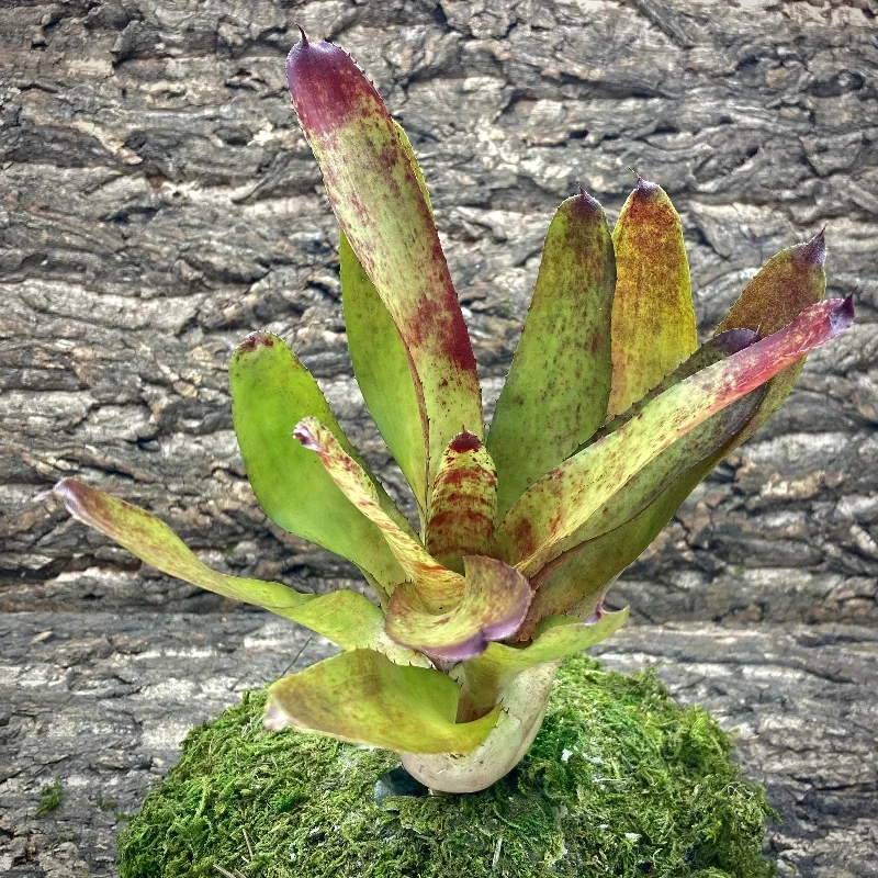 Neoregelia Bromeliads are typically found in the canopy of a rainforest and are considered to be a epiphyte, as such they do not require to be planted directly into the soil. They will gather their nutrients from the rain water and animal droppings left on their leaves.