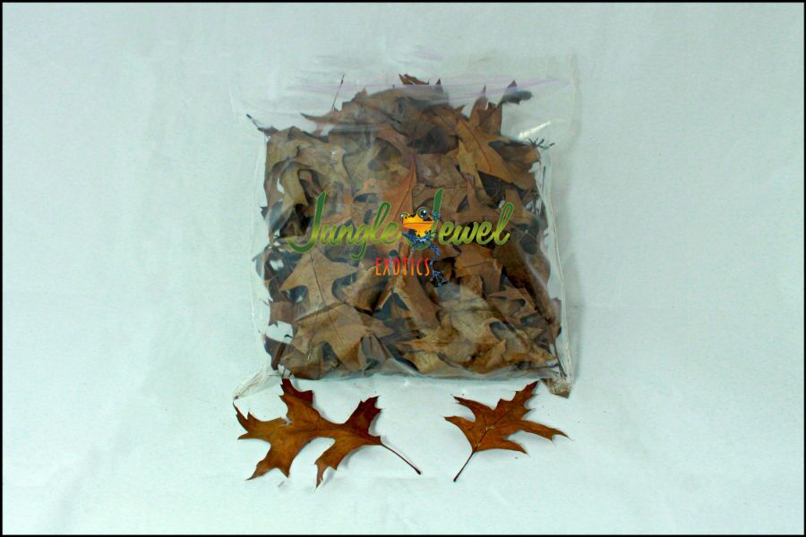 Dried Oak Leaves are a hardy leaf litter, as they take longer to decompose than other deciduous tree leaves may. Simply place them into your terrarium or vivarium to provide a multi use area for your reptiles and amphibians. They will use it for hiding in, foraging for Springtails or Isopods, and even for egg laying sites.