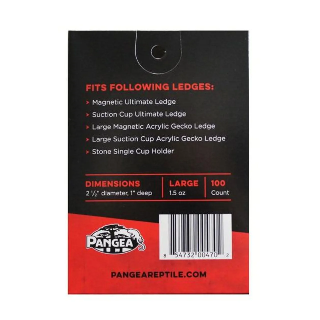 These recyclable and reusable gecko feeding cups, fit the Pangea Ultimate Magnetic Gecko Ledge, Large Acrylic Ledge, Large Suction Cup Ledge, Stone Single Cup Holder, and many other gecko feeding ledges that hold a 1.5oz feeding dish.