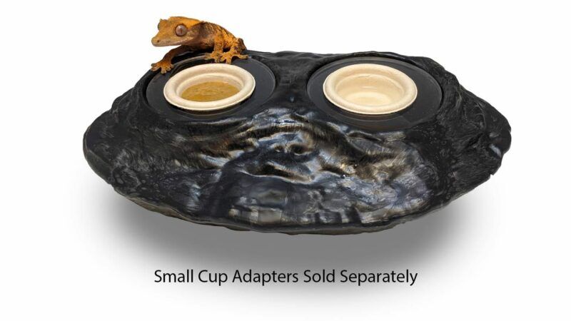 The paper feeding cups were crafted to fit the Pangea (and other) ledges or dishes perfectly! The small feeding cups fit in the Mini Magnetic Gecko Ledge, stone dual cup holder, and the small acrylic ledges. Additionally, they can fit in the Ultimate Feeding Ledges with the Small Cup Adapter.