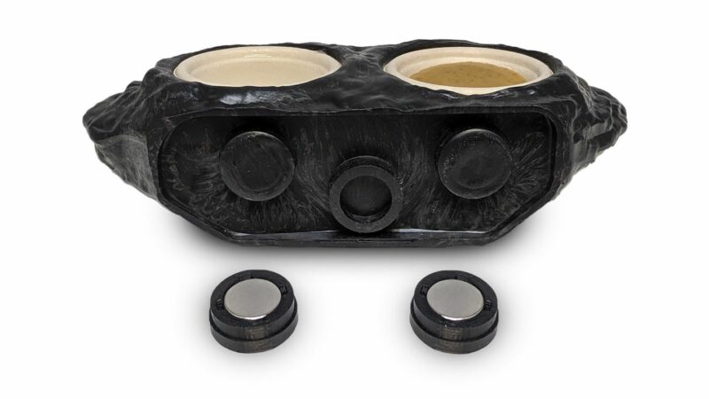 Looking for the Ultimate Magnetic Gecko Feeding Ledge? This mushroom style magnetic feeder rock ledge makes feeding your geckos super easy! This ledge holds two 1.5 oz cups do you can provide both food and water for your reptile pet.