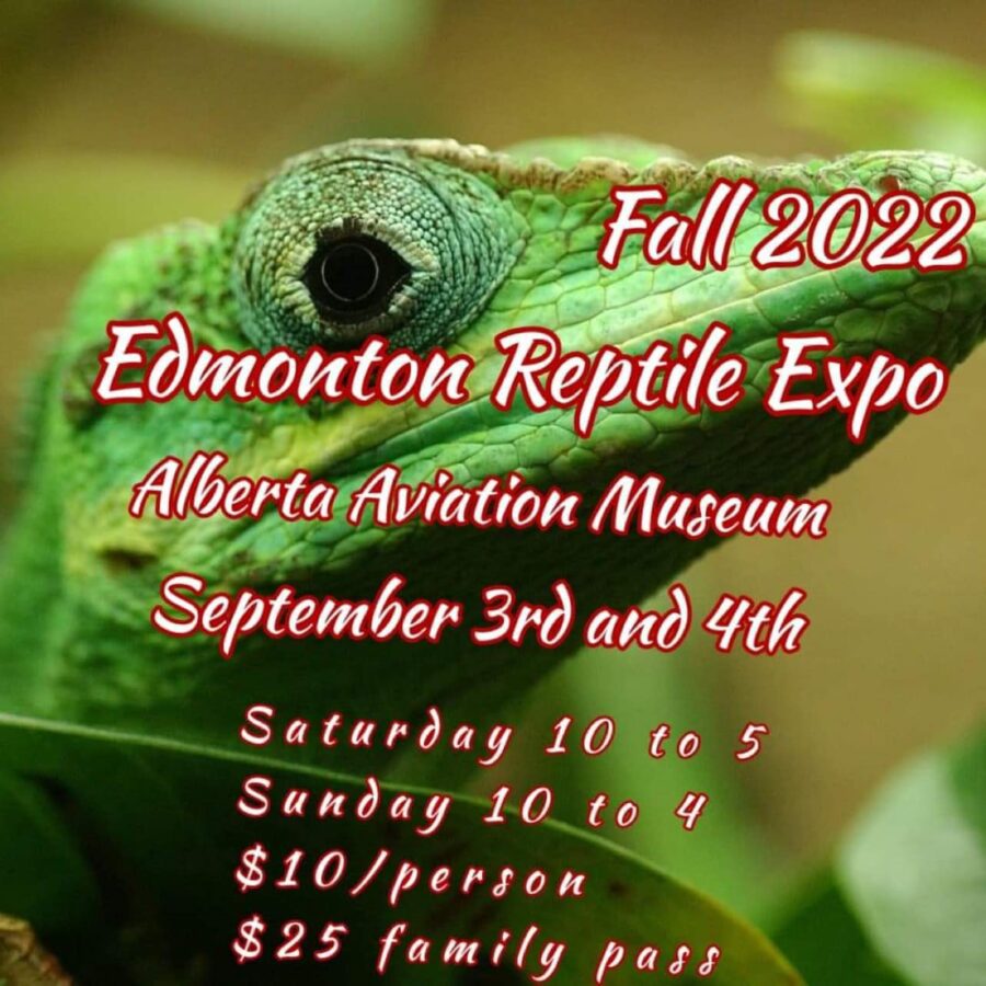 The Edmonton Reptile Expo will on September long weekend. September 3-4 2022, at the Alberta Aviation Museum. 11410 Kingsway NW, Edmonton, Alberta.