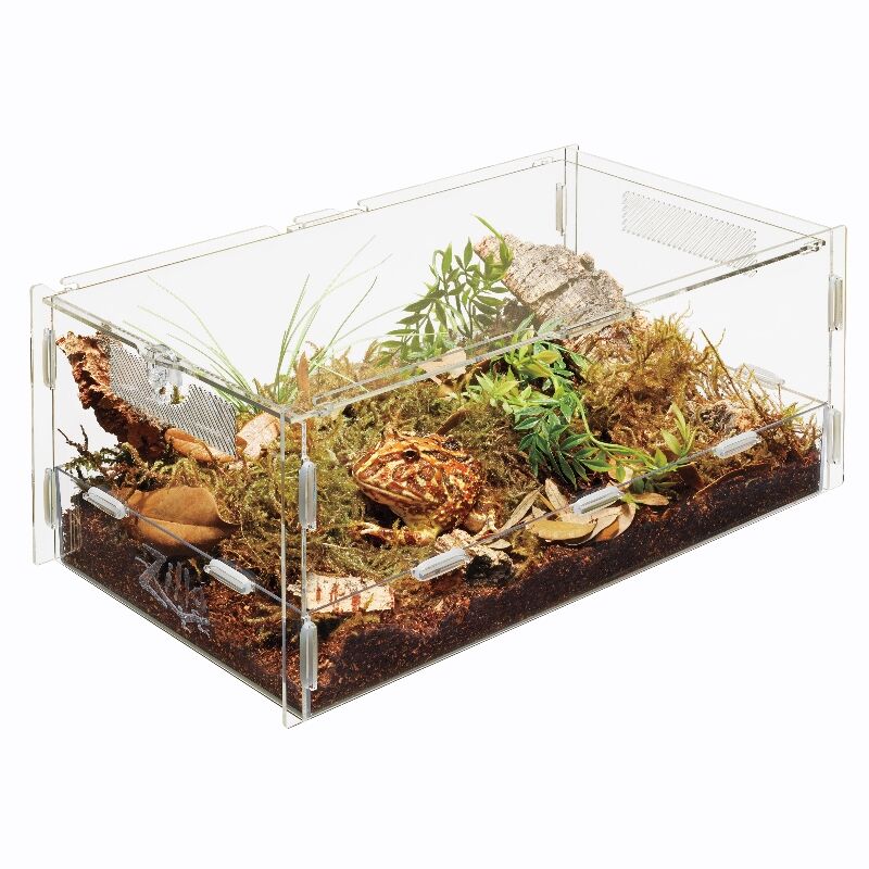 They also make a great temporary habitats for observing the unique invertebrates you find in your back yard. Easily assembled to when needed, then broken down and stored when not in use. Crystal clear acrylic allows for views from all angles. Designed with a unique locking latch and added stability, these habitats create a secure home for your pet.